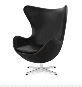 Ægget - Essential læder sort kom til verden i 1958 designet af den danske designer Arne Jacobsen for Fritz Hansen. Den smukke loungestol er siden dets opstanden, blevet et verdenskendt designmøbel med dets karakteristiske og tidsløse design. Ægget kom til verden i forbindelse med et projekt til Royal Hotel i København, som Hr. Jacobsen skulle hjælpe med. I samme anledning blev hans designklassikere som Serie 3300, Dråben, Svanen og Svanesofaen også præsenteret, og med et skrev Arne Jacobsen sig ind i den danske designhistorie, som også er blevet kendt på verdensplan.