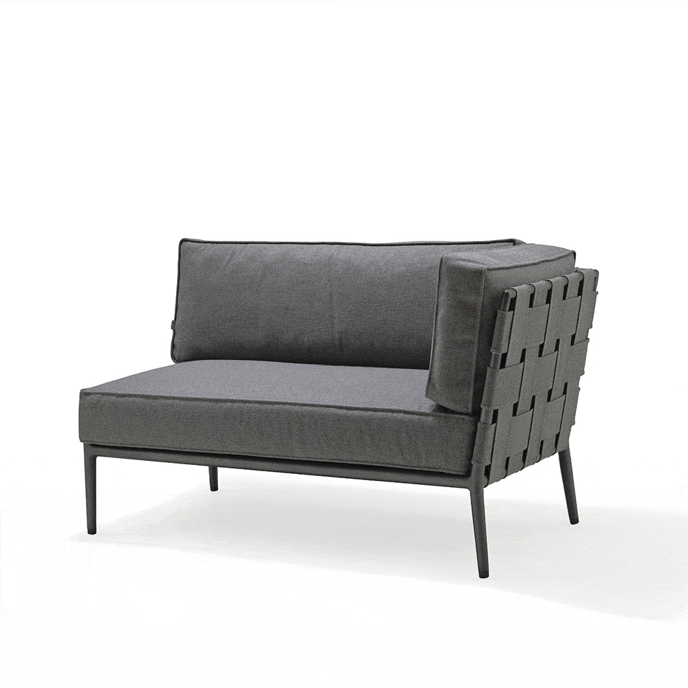 Dette to personers modul giver gode muligheder for at skabe det perfekte udendørs loungeområde. Det kan bruges som en enkeltstående chaiselong eller være en del af en større lounge gruppe. Uanset, hvordan du vælger at bruge din Conic sofa, er komforten optimal og designet er skabt med henblik på fleksibilitet. På grund af den lette aluminiumsramme kan modulet nemt flyttes rundt, og systemets fleksibilitet betyder, at du kan skabe en afslappende "rede" med dyb siddekomfort eller en klassisk lounge sofa.