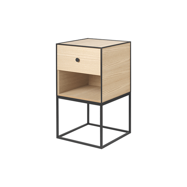 Frame 35 er en del af en hel Frame kollektion, bestående af flere Frame borde i forskellige størrelser og både med enten hylder, låger eller skuffer. I kollektionen findes også mindre opbevaringsløsninger samt reservedele, kasser, skuffer hylder m.m. Find det store udvalg og vælg den der passer bedst til din indretning her.