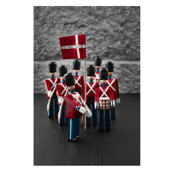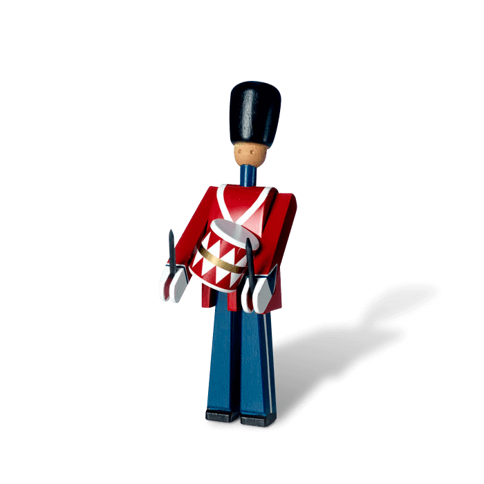 Inspireret af et af Danmarks nationalsymboler fra Amalienborg Slotsplads skabte Kay Bojesen i 1942 sine håndmalede gardere. Lige siden har Trommeslageren, Fanebæreren og den Menige garder med gevær været stolte repræsentanter for dansk kvalitetsdesign. Trommeslageren er en god gaveide til alle, store som små!