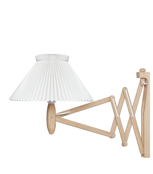 31 cmDenne væglampe fra LE KLINT findes i flere træsorter: sort eg, røget eg og lys eg, og flere typer af skærme, papirskærme og standardskærme. Lampens helt særlige karakteristika er, at den som en farmonika kan trækkes ud og skubbes ind alt efter, hvor man har brug for lyset.