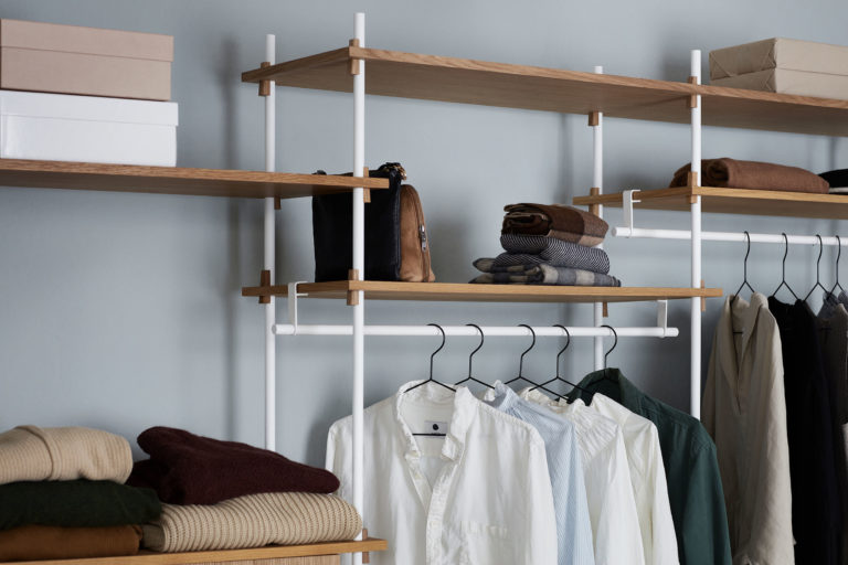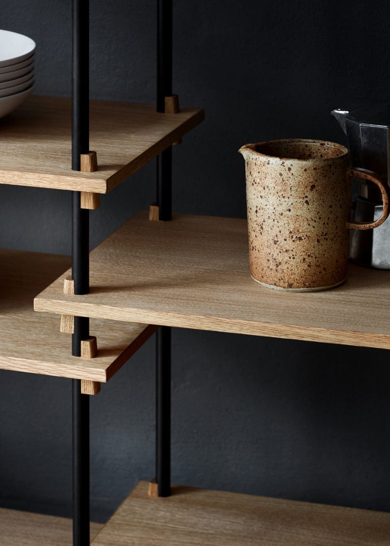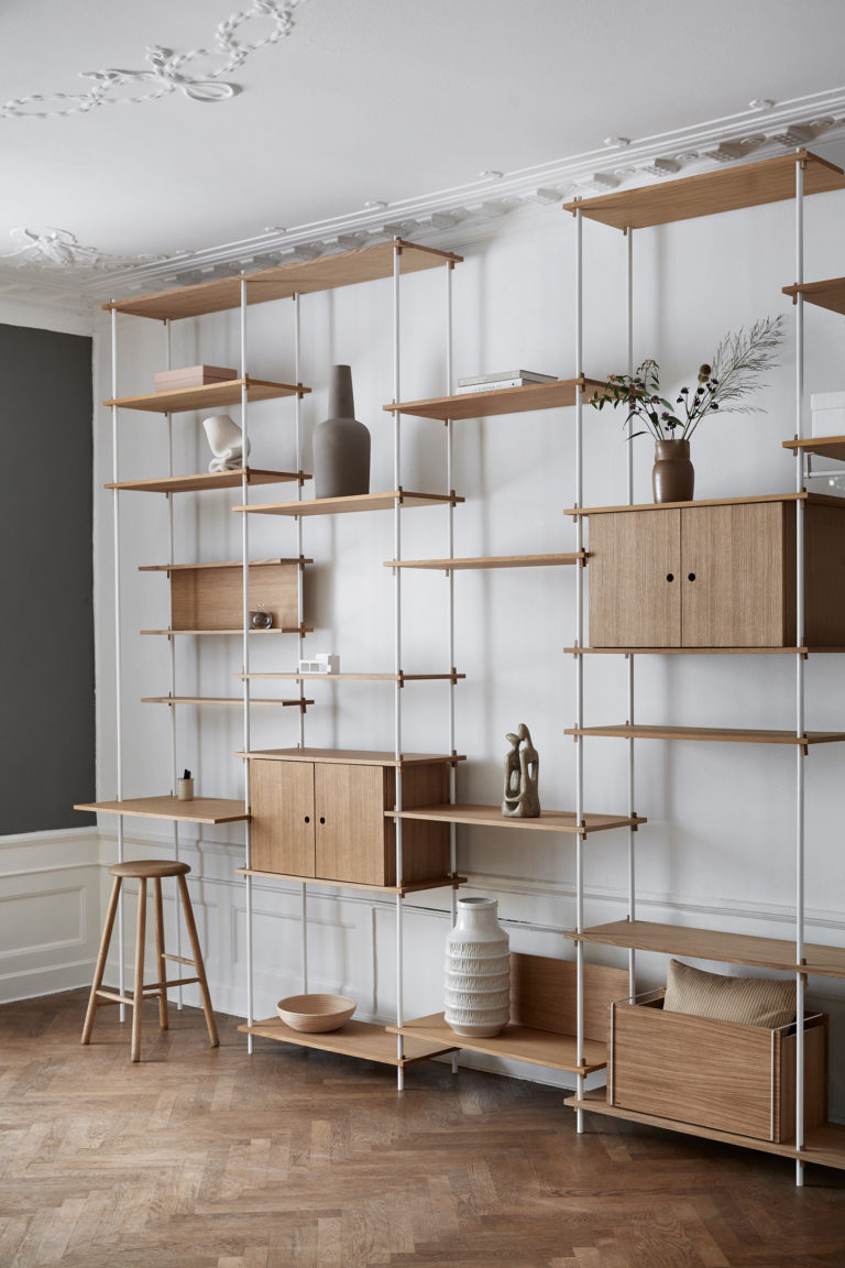 Shelving systemet fra MOEBE giver dig fri mulighed for at sammensætte dit eget reolsystem, så det passer til ethvert rum og behov.