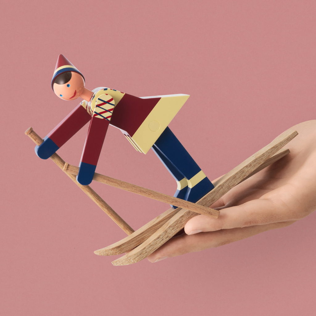 I slutningen af 1940’erne designede Kay Bojesen de to glade skiløbere. Den glade skiløberpige, med røde kinder og stort smil, er navngivet Datti, der var kælenavn for Kay Bojesens svigerinde Ruth (gift med Otto). Den mandlige skiløber, Boje, er opkaldt efter kælenavnet på Bojesens søn, Otto.