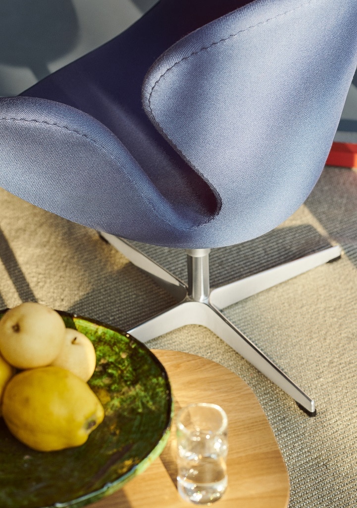 40 cmSvanen er designet af Arne Jacobsen. det alsidige design gør, at stolen passer ind både på arbejdspladsen, men også i de fleste hjem. Stolen findes i flere farver, og både i tekstil og læder. Find link til andre varianter længere nede på siden.