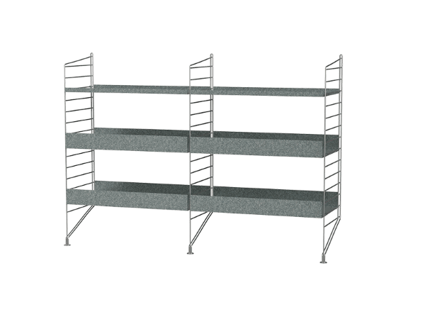 String Udendørs - Kombination A er en lækker to-sektionskombination som er beregnet til udendørsbrug. Reolsystemet har galvaniseret paneler og hylder, som vil ændre sig med tiden. String Furniture har udviklet flere kombinationer af reoler til opbevaring, til hele hjemmet - Vi har et stort udvalg af dem.