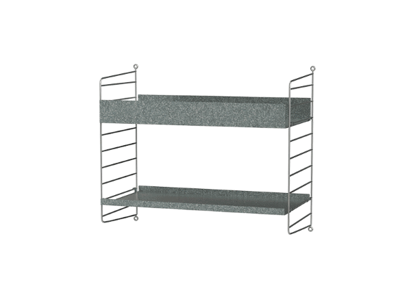 String Udendørs - Kombination D er en lækker sektionskombination som er beregnet til udendørsbrug. Reolsystemet har galvaniseret paneler og hylder, som vil ændre sig med tiden. String Furniture har udviklet flere kombinationer af reoler til opbevaring, til hele hjemmet - Vi har et stort udvalg af dem.